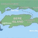 Bere Island is located two miles off the South-West coast of Ireland in Bantry Bay, County Cork. To the North there is the rugged and beautiful Beara Peninsula, while to the east and south lies the vast bay, which has played host to some of the world’s largest ships. The island faces the open Atlantic to the south and south-west offering spectacular views in all directions. The licensed car/passenger ferry “Ikom K” operates between the “Pontoon” pier (See location map below) on the mainland and Lawrence Cove on the island where Rerrin village is located with a Shop, Post Office, Pub, Café/Restaurant, 2 hostels, Marina and Craft Shop. There are Self-catering Holiday Homes in Ardagh which is located 1 mile away from where the ferry lands. Other attractions on Bere Island include the Beara Way walking route, a cycling route, shore angling, archaeological sites, the remains of Victorian British military fortifications and two Martello towers, one of which has recently been restored and opened as a Heritage Centre .